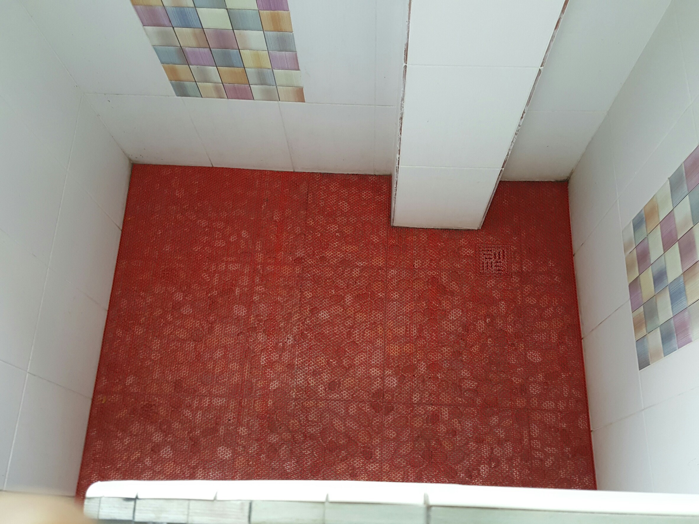 วิธีที่3 คือ การปูแผ่นกันลื่นที่พื้นห้องน้ำ ใช้งบหลักร้อย ซึ่งราคาของแผ่นกันลื่นจะขึ้นอยู่กับความหนา และหน้ากว้างของแผ่นกันลื่นค่ะ และสามารถปูได้เต็มพื้นห้องน้ำ และเวลาที่ล้างมือ ล้างหน้า น้ำที่กระเด็นลงพื้นก็จะกระเด็นลงผ่านรูระบายของแผ่นกันลื่นลงไป ทำให้สามารถกันพื้นลื่นได้ค่ะ